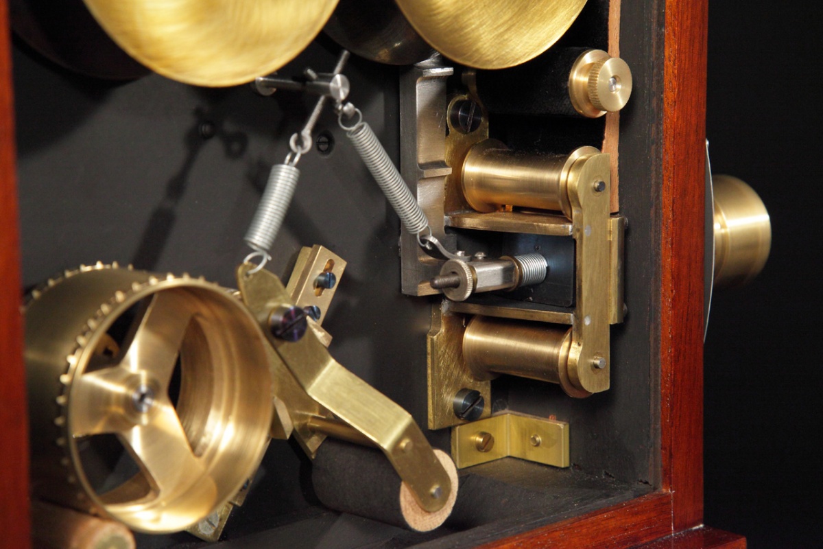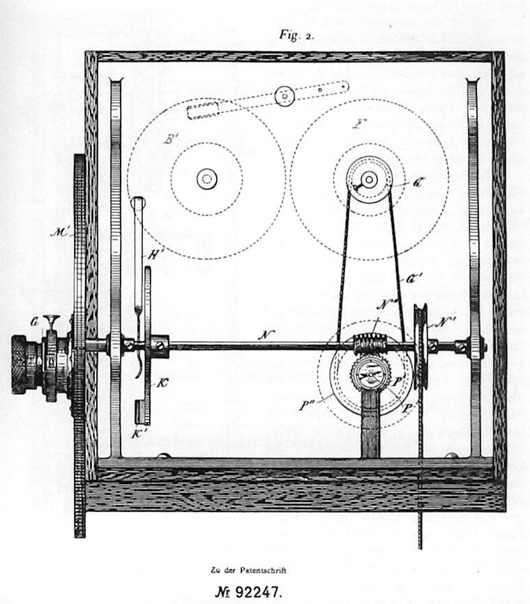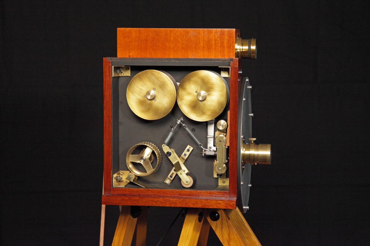 The complex story of the development of motion picture cameras by Birt Acres and Robert William Paul now needs to be re-told, following the investigative work that has led to the building of a working replica of arguably the most important of these cameras, the one used to film the Derby horse race in 1895.The project initially examined the British patent drawings and workshop drawing of what were believed to be the first designs by Acres and Paul for their version of a motion picture camera using 35mm perforated film. Their respective contributions to the design are still a matter of considerable debate.It soon became clear that the design as shown in the British patent would not be easy to interpret and reproduce as an actual machine. The nature of the gearing was only sketched in, and raised a number of difficult questions. The design shown in a workshop drawing (possibly the machine known as the ‘Kinetic Camera’ ) would not have produced the profile that can be seen in the photograph of Acres filming the Derby horse race in the Spring of 1895.