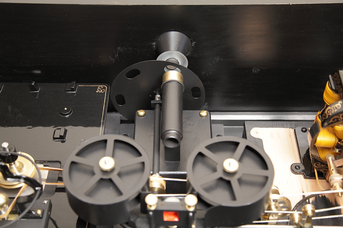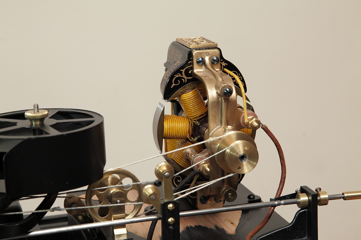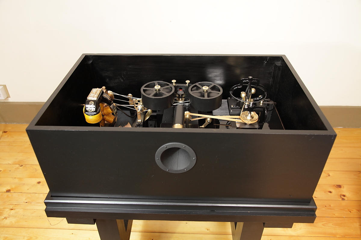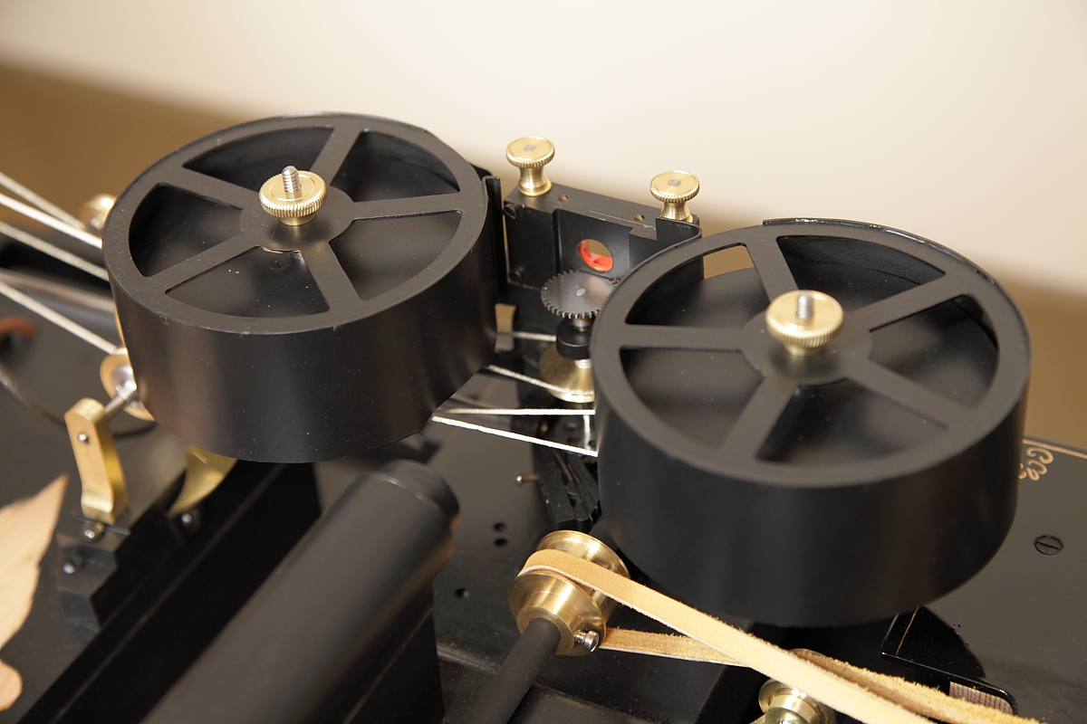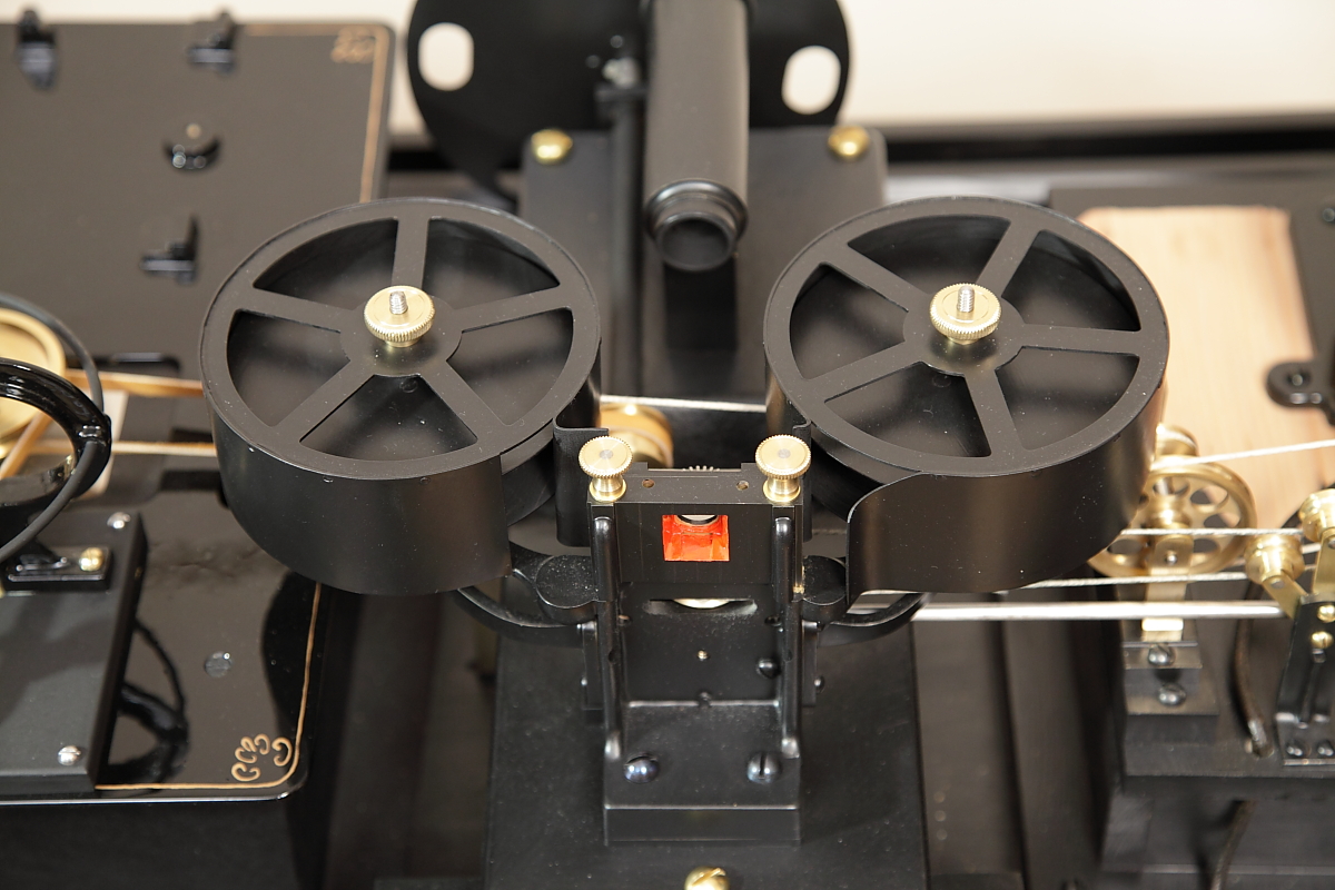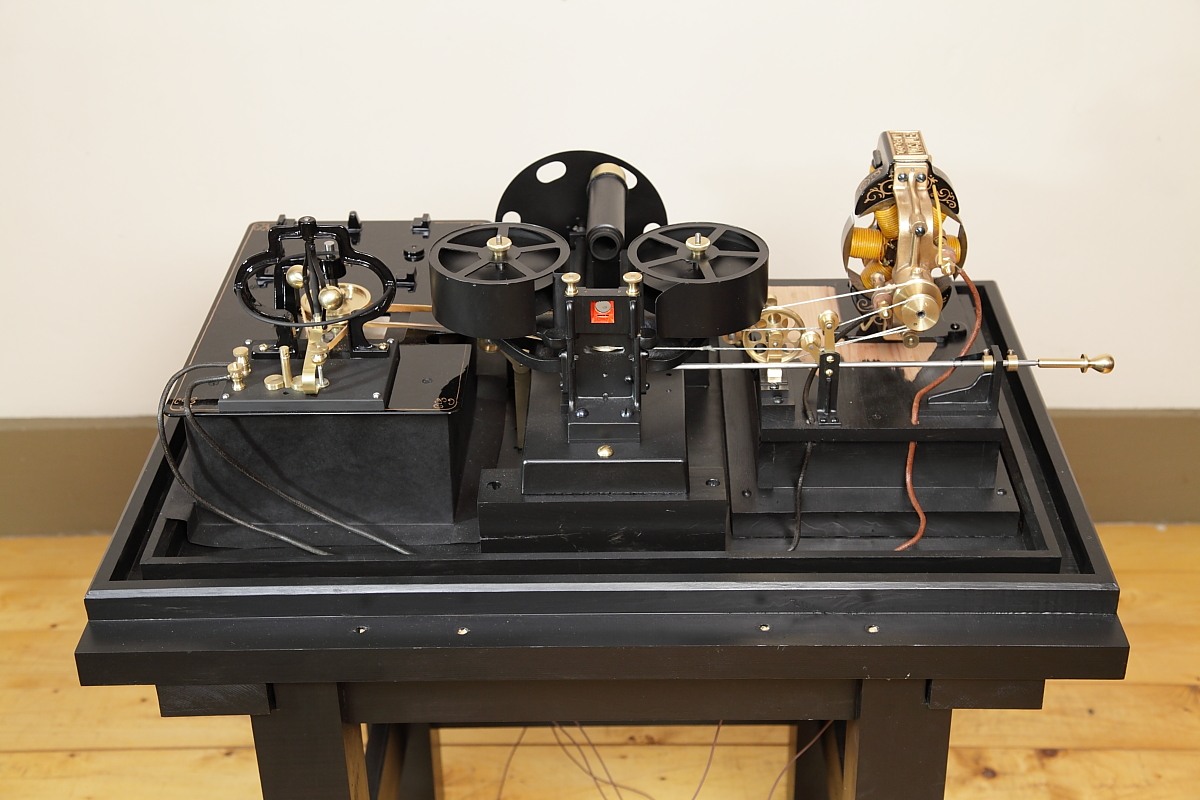 With the development of the Kinetograph camera and kinetoscope peepshow viewing machine, Thomas Alva Edison’s team, led by William Kennedy Laurie Dickson, produced the first commercial motion picture film systems. Initial experiments with minute images on sheet celluloid wrapped around translucent cylinders were soon abandoned in favour of perforated filmstrips.This working replica presented one of the most difficult challenges, to reproduce the working electric motors. The development and construction of this replica, perhaps more than any of the others, gave the team involved a huge respect for the original team of inventors and designers, who did not have our benefit of examining the final successful machine before starting the project! Working with state-of-the-art materials and technology, somehow Edison’s team overcame all of the problems that they came up against. |