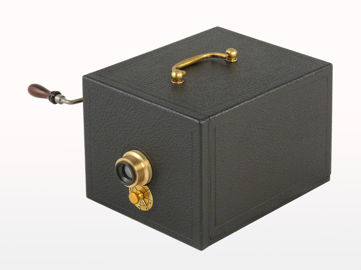 ![]() In 1889 or 1890, Mortimer Evans improved the camera originally created with William Friese-Greene as the ‘Photoramic Camera’. The smaller version closely follows the layout of the 1889 patent.This compact arrangement would most likely have had the same limitations as the earlier version, in terms of the number of images per second that it was possible to expose – perhaps three or four. It may be that the surviving sequence of 50 frames of the busy King’s Road Chelsea were taken with the original of this design. Evans went on to suggest further changes to the design. |
